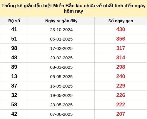 💰 Thống kê 2 số cuối GĐB lâu về nhất tính đến hôm nay: