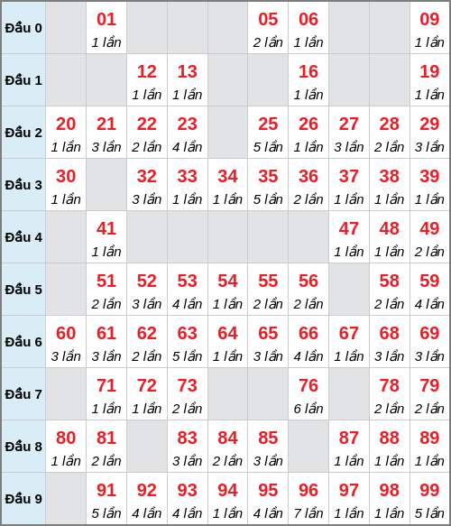 Bảng bạch thủ MB lâu về tính đến 01/01/2026