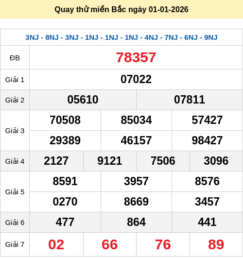 2. Thống kê lô tô miền Bắc ngày 01/01/2026 thứ 5