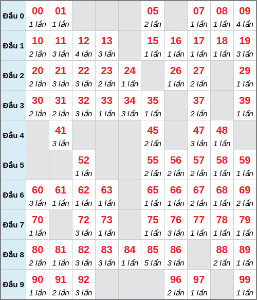 ⇒ Xem bảng tần suất lô tô các cặp số từ 00 đến 99 của đài miền Bắc trong tháng tại: