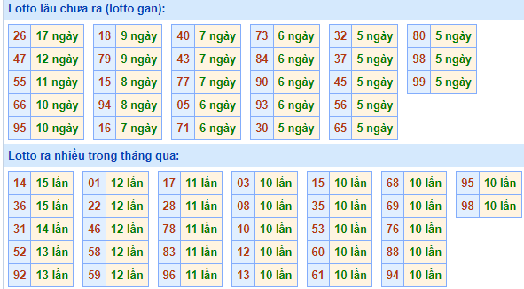 ⇒ Click để xem bảng thống kê tổng hợp tất cả những cặp số lâu về MB hôm nay tại: