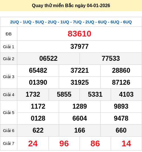 2. Thống kê lô tô miền Bắc ngày 04/01/2026 chủ nhật
