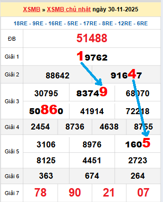 TK kết quả miền Bắc hôm nay sẽ đưa ra cho người chơi các cặp lô tô đẹp, những bộ số về trong thời gian gần đây để bạn có thể lựa chọn cặp số may mắn ngày 1 tháng 12 năm 2025 với cơ hội trúng giải cao, cụ thể: