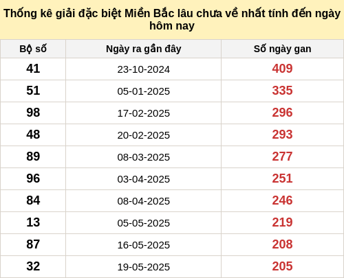 💰 Thống kê 2 số cuối GĐB lâu về nhất tính đến hôm nay: