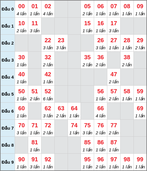 ⇒ Xem bảng tần suất lô tô các cặp số từ 00 đến 99 của đài miền Bắc trong tháng tại: