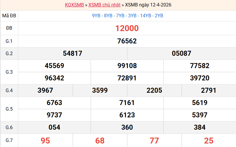 ✅ 2. Tổng hợp kết quả miền Bắc hôm qua ngày 12/04/2026