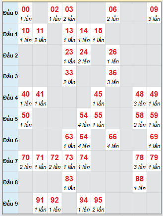 ⇒ Xem bảng tần suất lô tô các cặp số từ 00 đến 99 của đài miền Bắc trong tháng tại: