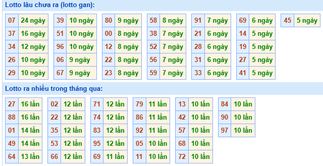⇒ Xem bảng tần suất lô tô miền Bắc từ 00 đến 99 trong tháng chi tiết nhất tại:
