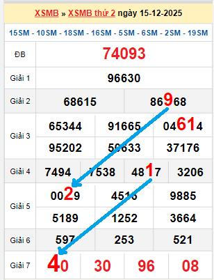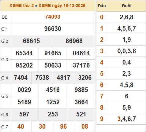 Kết quả xổ số miền Bắc ngày 15/12/2025