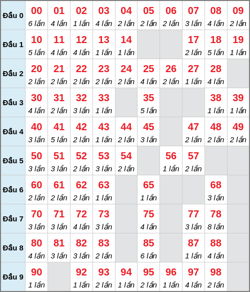 ⇒ Xem bảng tần suất lô tô các cặp số từ 00 đến 99 của đài miền Bắc trong tháng tại: