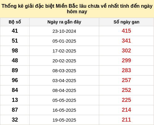 💰 Thống kê 2 số cuối GĐB lâu về nhất tính đến hôm nay: