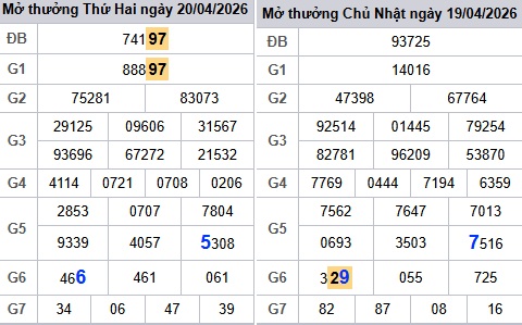 ✅ 2. Tổng hợp kết quả miền Bắc hôm qua ngày 20/04/2026