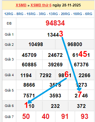 1. Dự đoán miền Bắc ngày 29 tháng 11 năm 2025 thứ 7 chiều tối nay