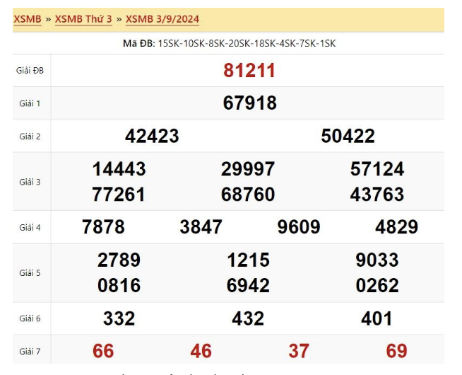 🍀1. Xem lại kết quả XSMB ngày hôm qua 4/9/2024