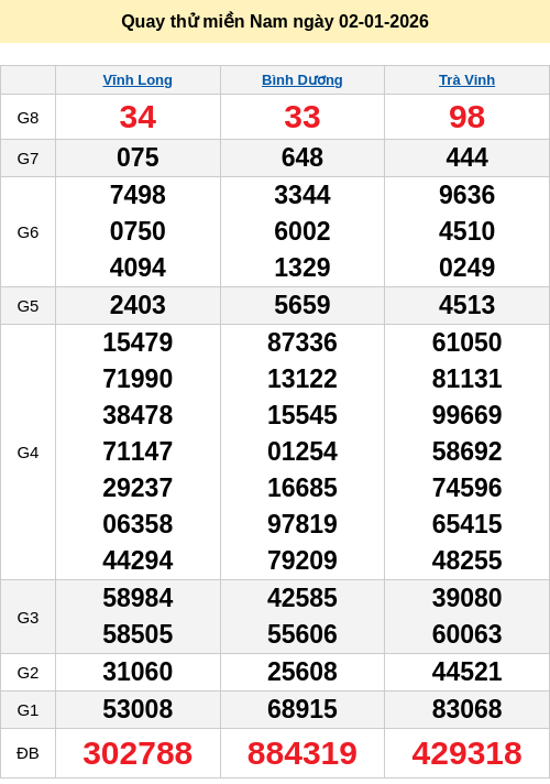 Bảng quay thử miền Nam 02/01/2026
