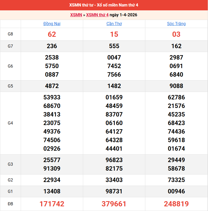 Bảng kết quả kỳ trước 01/04/2026