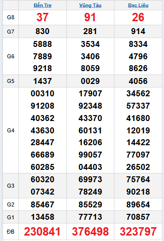 💰 Thống kê giải tám Bến Tre: 62 - 72 - 93 - 91 - 34 - 30 - 60