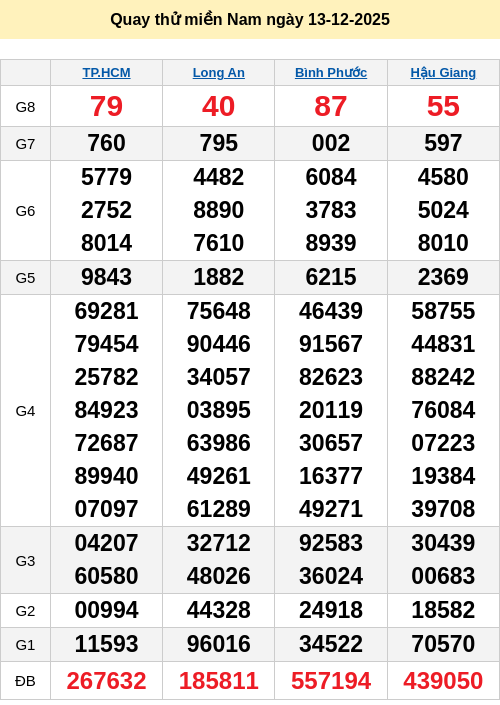 2. Thống kê lô tô miền Nam ngày 13/12/2025 thứ 7