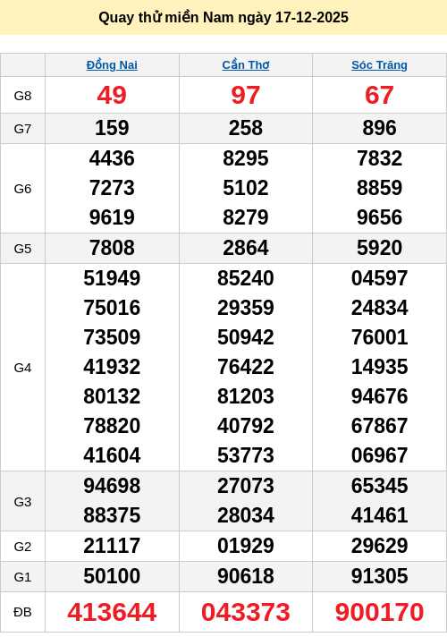 2. Thống kê lô tô miền Nam ngày 17/12/2025 thứ 4