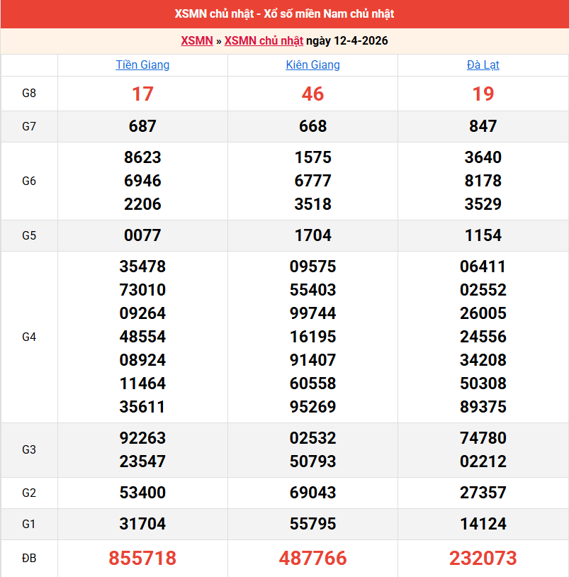 ✅ 2. Thống kê miền Nam 19/04/2026 hôm nay chủ nhật