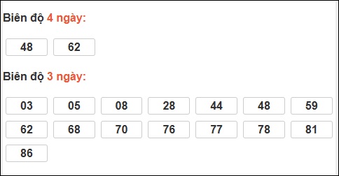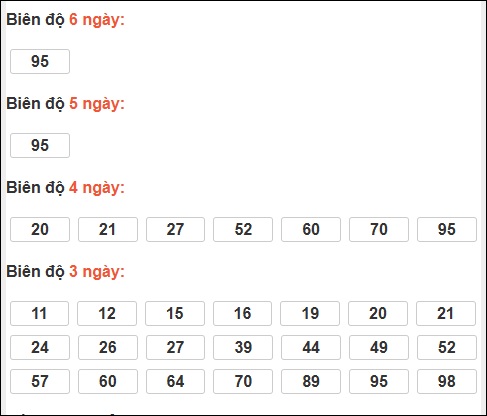Đuôi 3: 5 ngày, Đuôi 1: 4 ngày, Đuôi 5: 4 ngày, Đuôi 6: 2 ngày, Đuôi 0: 1 ngày