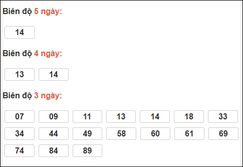 Đầu 9: 14 ngày, Đầu 0: 3 ngày, Đầu 5: 3 ngày, Đầu 3: 2 ngày, Đầu 7: 2 ngày