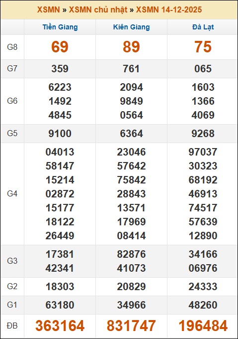 Kết quả xổ số Miền Nam 14/12/2025 chủ nhật tuần trước