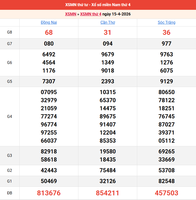 Bảng kết quả kỳ trước 15/04/2026