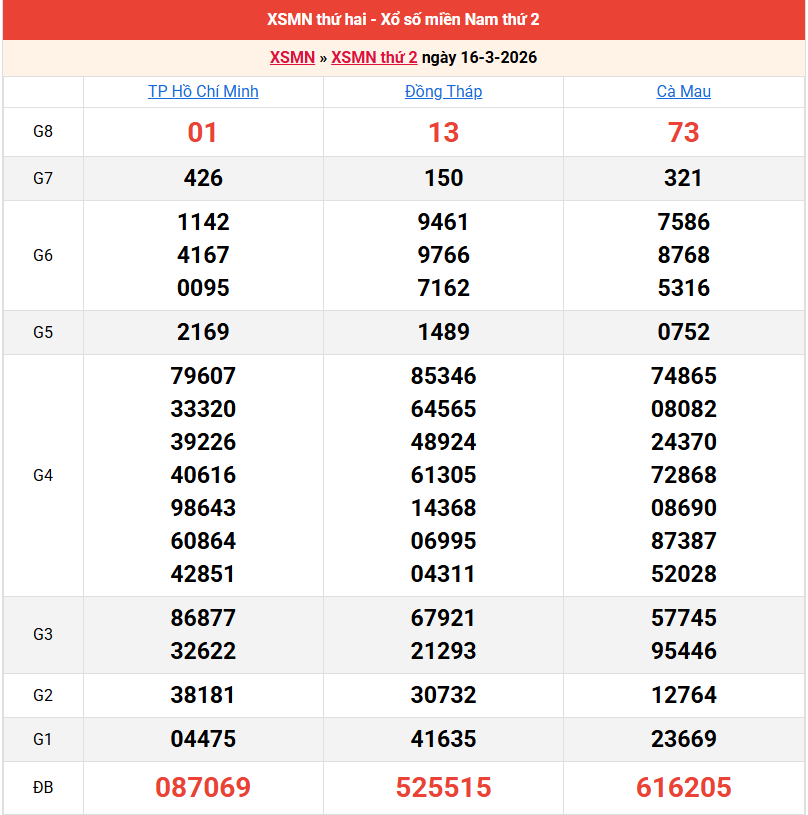 Bảng kết quả kỳ trước 16/03/2026