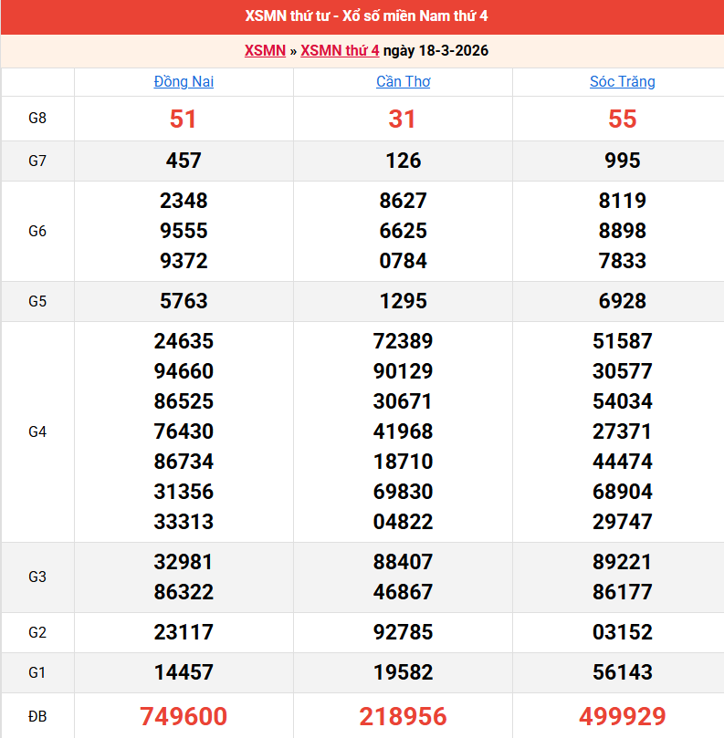 Bảng kết quả kỳ trước 18/03/2026
