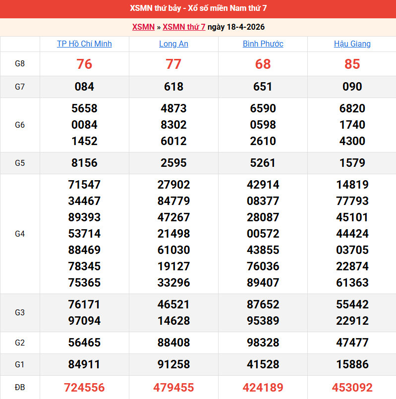 Bảng kết quả kỳ trước 18/04/2026