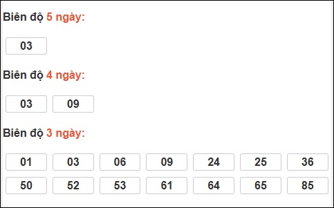 Đầu 3: 8 ngày, Đầu 6: 6 ngày, Đầu 9: 5 ngày, Đầu 0: 3 ngày, Đầu 7: 2 ngày