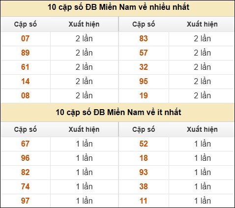⚡ 10 cặp số ĐB Miền Nam về nhiều nhất/ ít nhất tính đến ngày 25/12/2025: