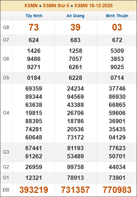 ⇒ Từ số liệu tổng hợp, phân tích xổ số miền Nam ngày 25 tháng 12 năm 2025 chi tiết theo các tỉnh gồm có: loto về nhiều nhất, lô tô gan XSMN, TK đầu - đuôi giải đặc biệt lâu chưa về trong 10 ngày, 30 ngày gần đây, giúp bạn đưa ra phán đoán XSMN 25/12 hôm nay.