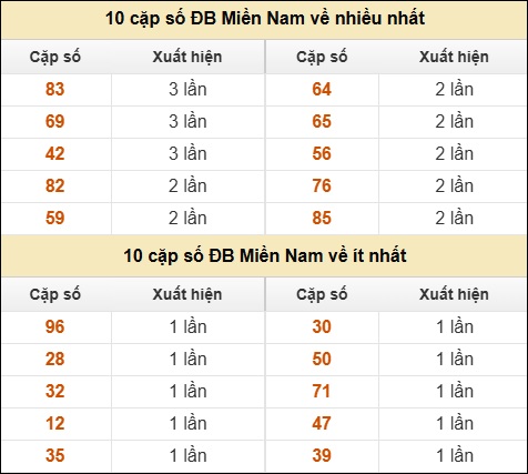 ⚡ 10 cặp số ĐB Miền Nam về nhiều nhất/ ít nhất tính đến ngày 26/12/2025: