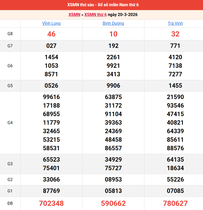 Bảng kết quả kỳ trước 20/03/2026