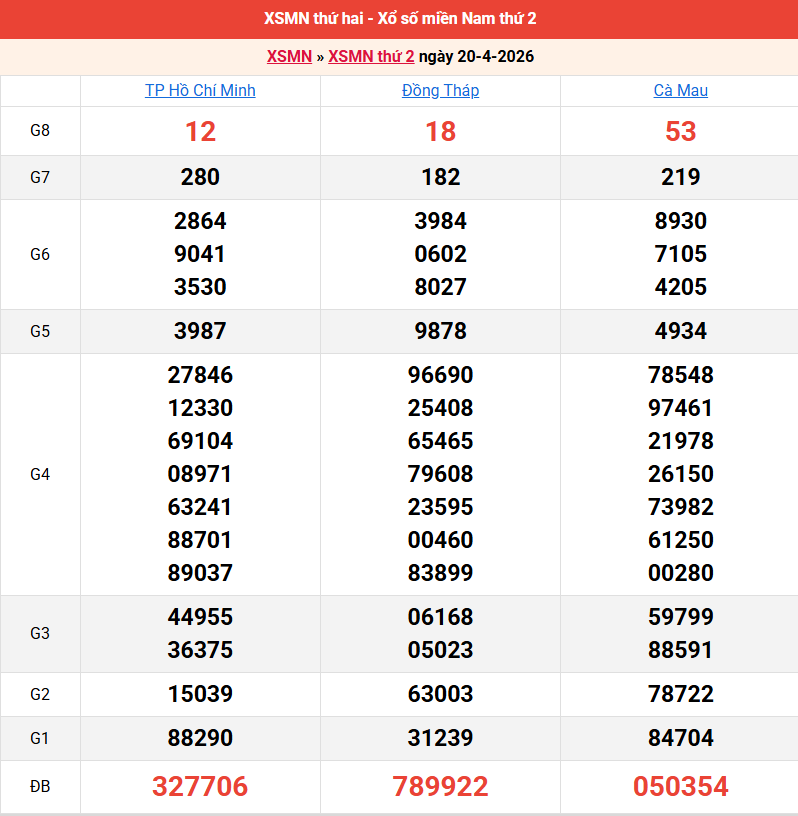 Bảng kết quả kỳ trước 20/04/2026