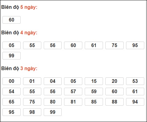 Đầu 8: 6 ngày, Đầu 0: 5 ngày, Đầu 6: 5 ngày, Đầu 4: 2 ngày, Đầu 2: 1 ngày