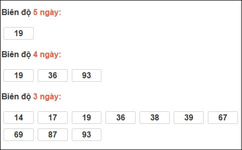 Đuôi 3: 6 ngày, Đuôi 2: 2 ngày, Đuôi 4: 2 ngày, Đuôi 8: 2 ngày, Đuôi 7: 1 ngày