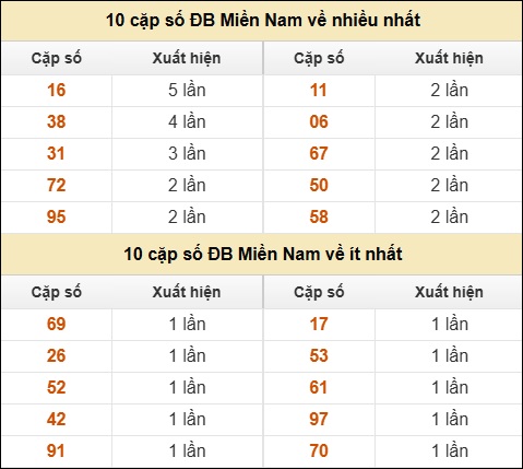 ⚡ 10 cặp số ĐB Miền Nam về nhiều nhất/ ít nhất tính đến ngày 27/12/2025: