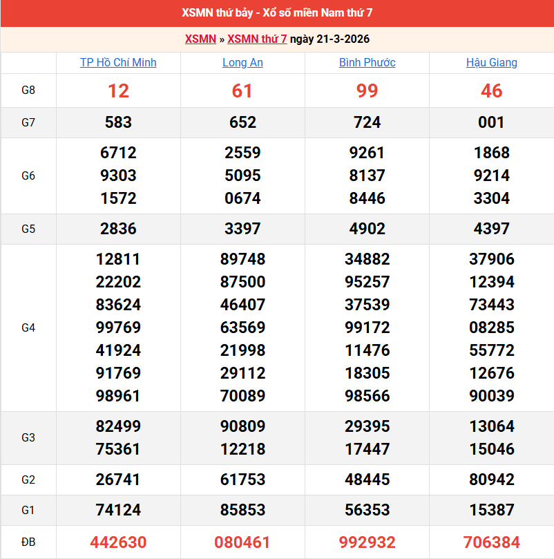 Bảng kết quả kỳ trước 21/03/2026