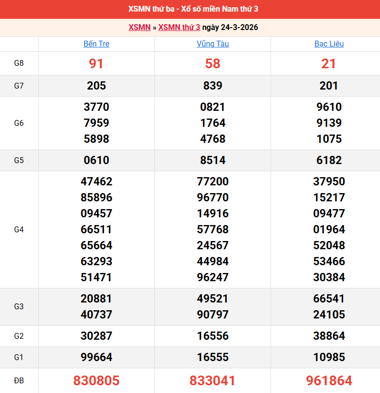Bảng kết quả kỳ trước 24/03/2026