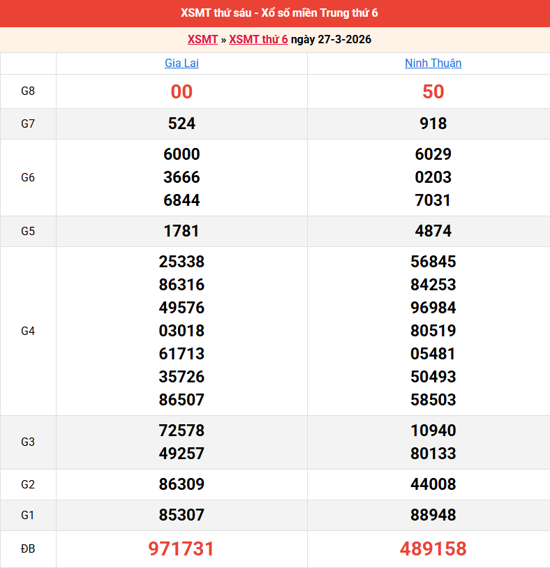 Bảng kết quả kỳ trước 27/03/2026