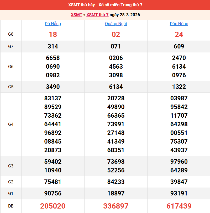 Bảng kết quả kỳ trước 28/03/2026