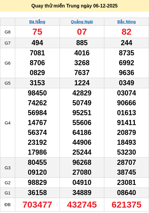 Thống kê kết quả hôm nay sẽ đưa ra các cặp lô tô đẹp, thông tin của những bộ số đầu đuôi lô tô, giải ĐB, giải tám xổ số miền Trung về trong thời gian gần đây để bạn lựa chọn cặp số may mắn ngày 06/12/2025 với tỉ lệ trúng giải cao, cụ thể: