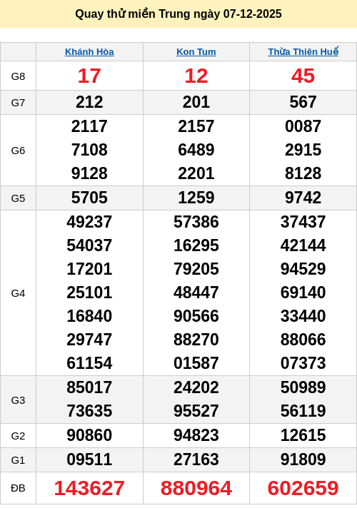 Mời các bạn tham khảo thông tin quay thử miền Trung ngày 07/12/2025 để có được những con số dự đoán có khả năng về cao trong bảng kết quả kỳ tới.