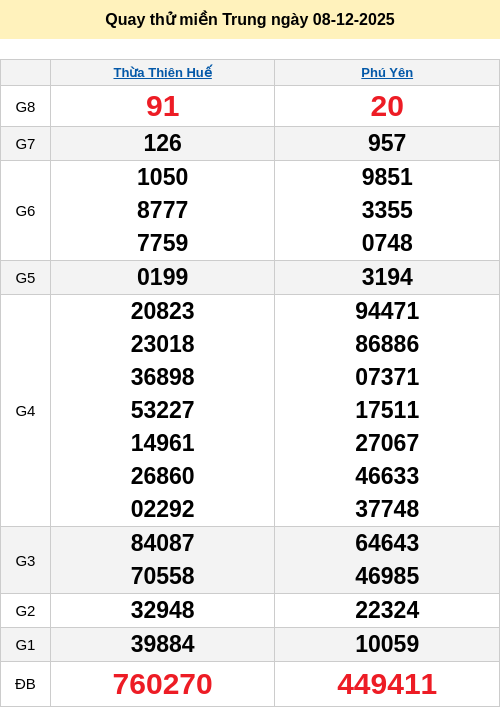 Bảng quay thử miền Trung 08/12/2025