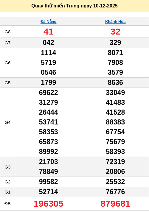 Thống kê XSDNG ngày 10/12/2025