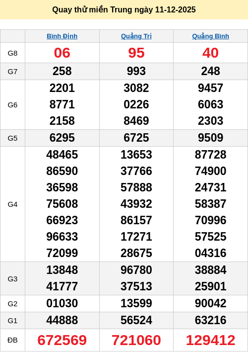 Bảng quay thử miền Trung 11/12/2025