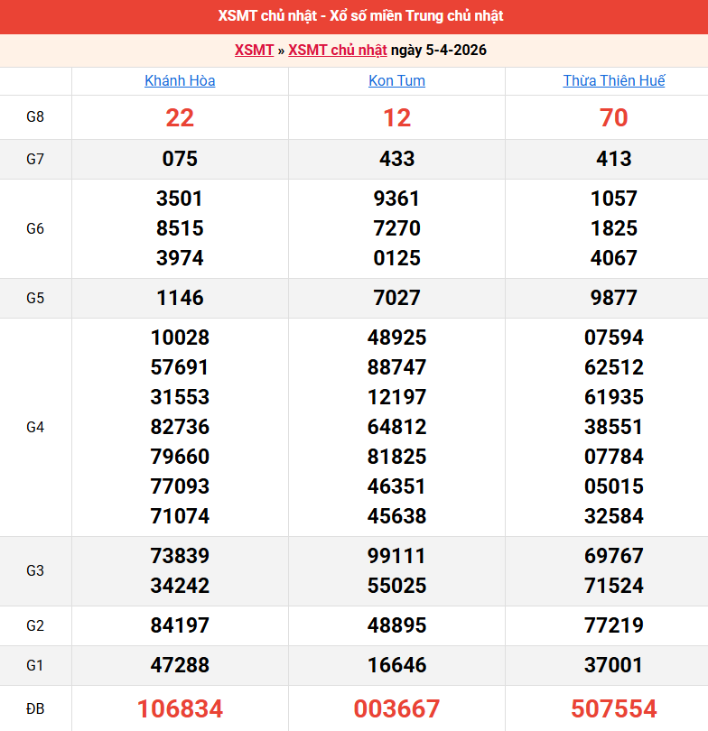 Bảng kết quả kỳ trước 05/04/2026